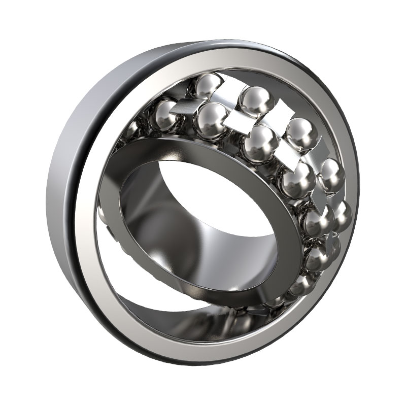 調心球軸承,其外圈為球形滾道而內圈為雙滾道,該類(lèi)軸承具有自動(dòng)調心性能。因此,當軸承承受載荷產(chǎn)生彎曲或因加工誤差、安裝誤差造成內圈軸線(xiàn)相對于外圈軸線(xiàn)產(chǎn)生傾斜時(shí),仍能保證機械正常運轉。調心球軸承根據不同尺寸系列所允許的角度誤差數值略有不同。
